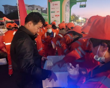 為進一步做好賽事保障工作,項目團隊在嚴格落實保障要求的同時,也注重對一線作業(yè)人員的人文關(guān)懷與后勤支持。針對清晨作業(yè)、氣溫較低的情況,凌晨四點,為一線崗位人員提供熱餐食,確保大家上崗前能吃上暖心早餐;賽事當(dāng)天,主管人員也在巡檢途中為各路段人員發(fā)放飲用水,及時補充體能。